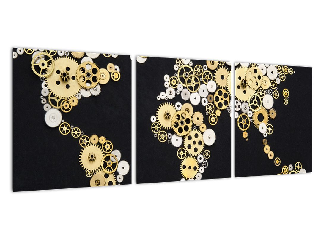 - Mapa světa z ozubených kol - obraz na stěnu 120x40cm