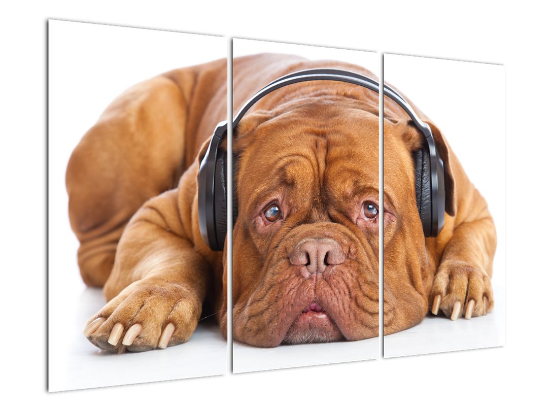 Moderní obraz - pes se sluchátky 120x80cm