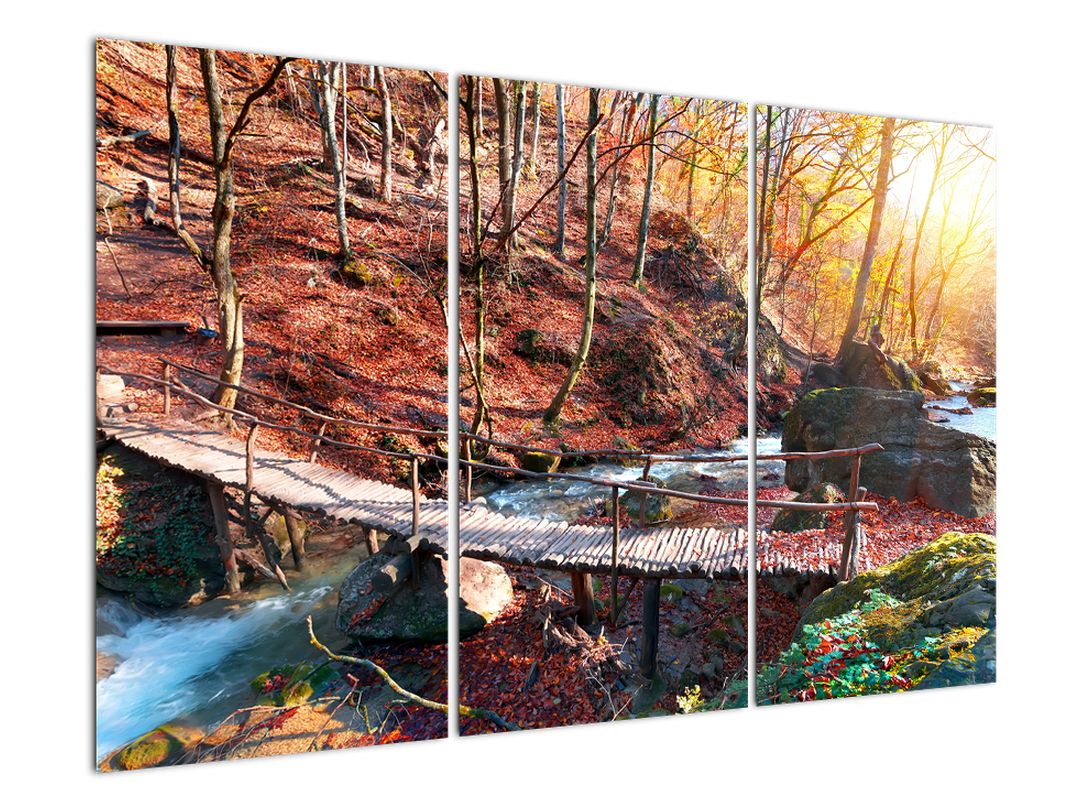- Obraz mostu - podzimní cesta lesem 120x80cm