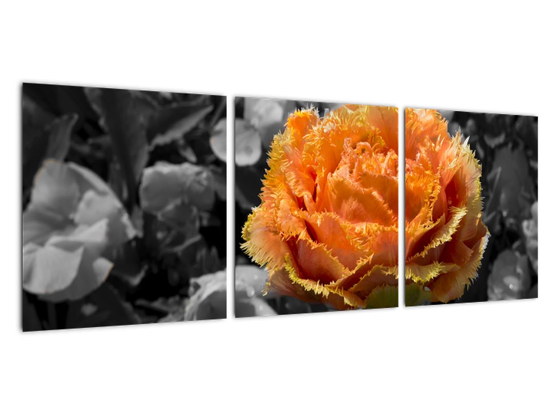 - Oranžový květ na černobílém pozadí - obraz 150x50cm